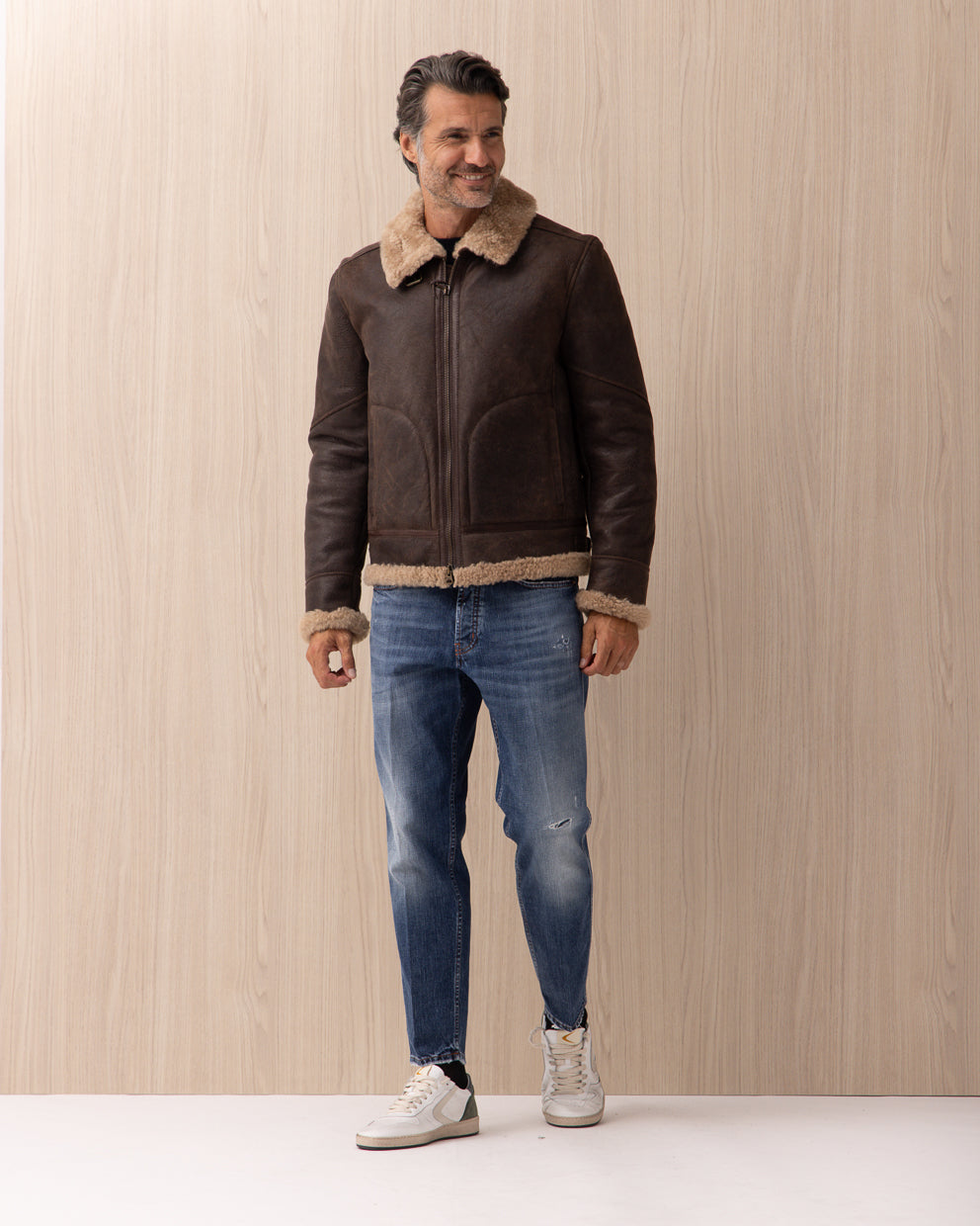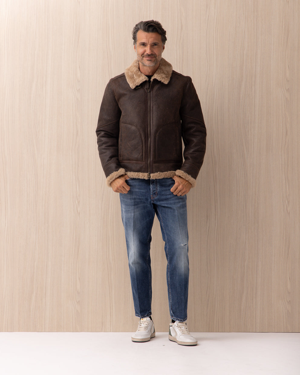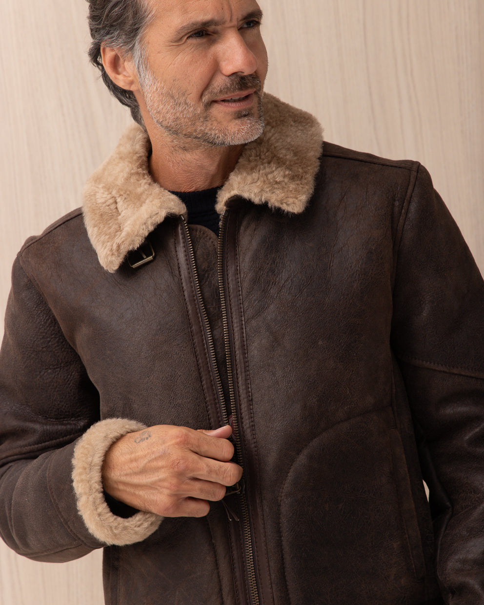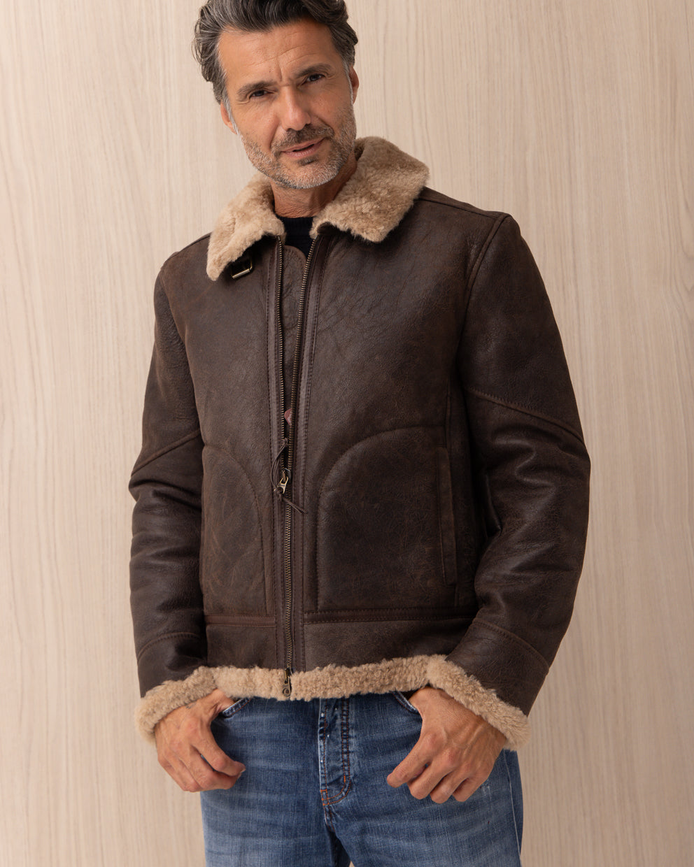 Giubbotto Stewart Marrone in Aviator Shearling