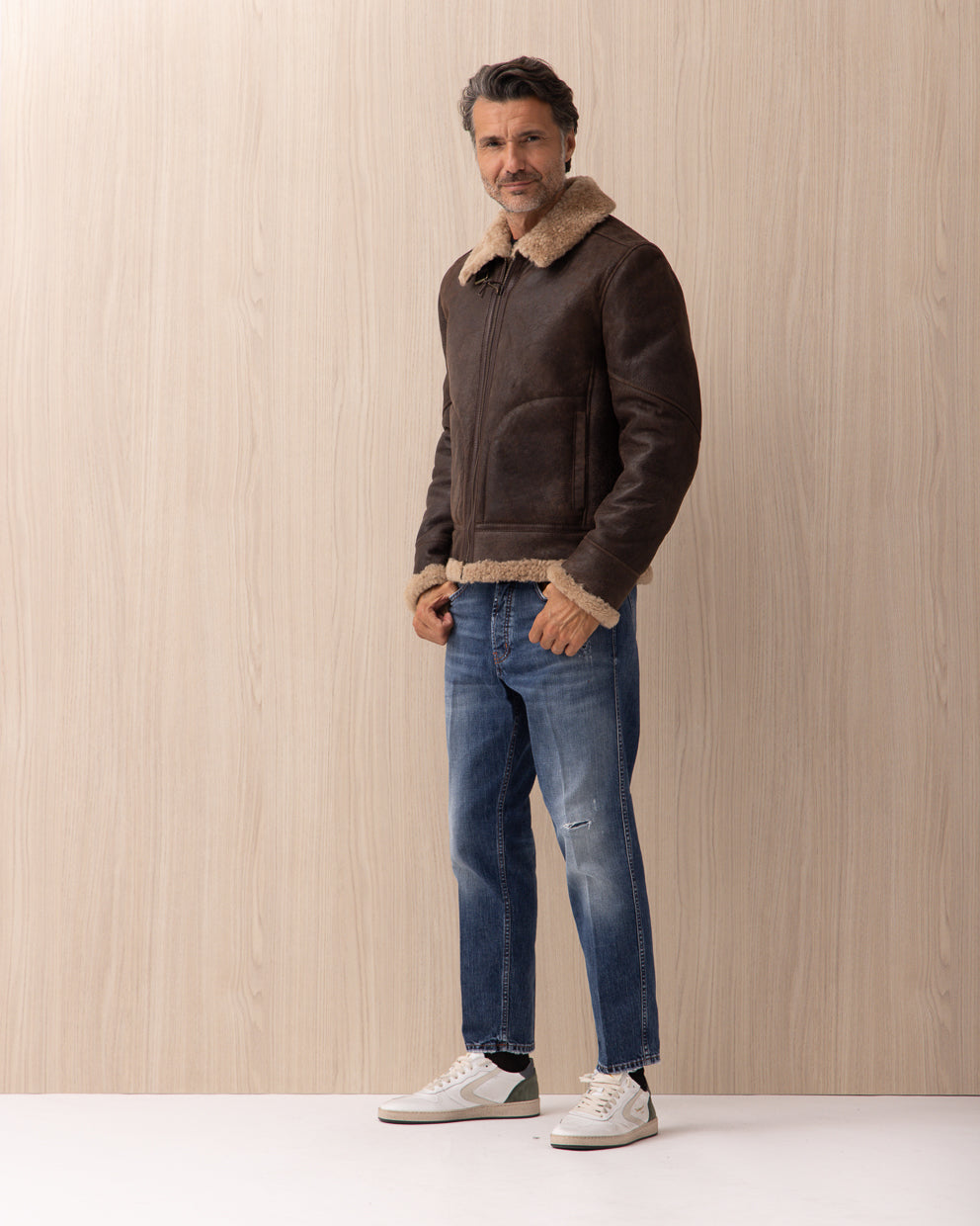 Lasciati avvolgere dall'eleganza senza tempo del giubbotto Sylvester di Stewart. Realizzato in pregiato aviator shearling, questo capo offre il perfetto connubio tra calore e morbidezza, arricchito da una resistenza che solo la pelle di alta qualità può garantire. Ispirato al classico modello aviatore, si distingue per un design deciso e una funzionalità impeccabile. La lavorazione artigianale italiana esalta la naturalezza della pelle, conferendo al giubbotto un carattere autentico e raffinato. Ideale per chi desidera uno stile sobrio ma di grande impatto, perfetto per un weekend in città o incontri formali, questo giubbotto si integra armoniosamente nel guardaroba di ogni uomo che apprezza l'eleganza e la cura sartoriale.- Vestibilità: Regular Fit- Collezione: Autunno/Inverno 2026- Composizione: 100% Pelle- Colore: Marrone
